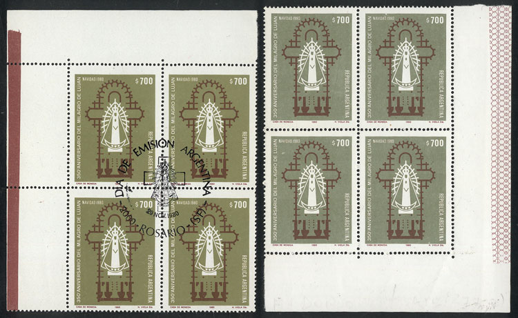 GJ.1971A, fantastic corner block of 4 printed on UNSURFACED paper, along a normal block with first day postmark for comparison, superb! (Image)