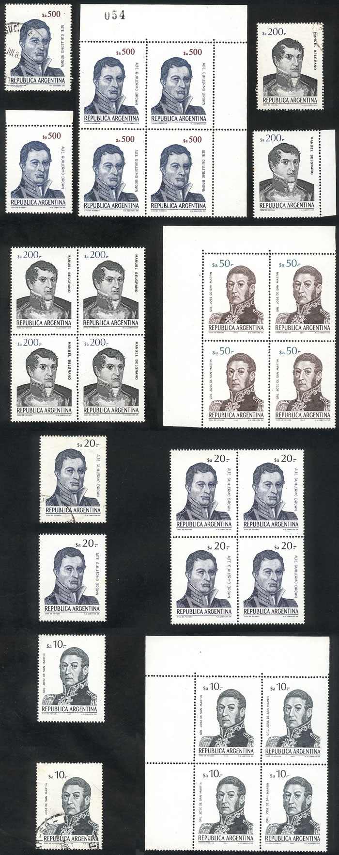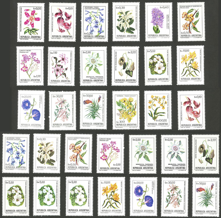GJ.2099/115 + 2100A/102A + 2104A/105A + 2107A/07B + 2108A + 2109A/09B/09C + 2110A/13A, Flowers cmpl. set (in Pesos Argentinos), including paper varieties, VF quality (Image)