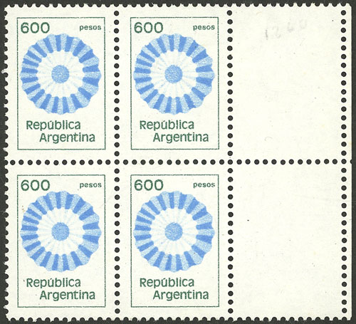 Cockade with overprint, marginal block of 4 printed on FLUORESCENT paper, VF quality! (Image)