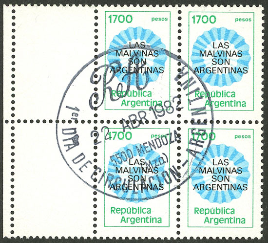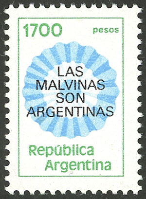 GJ.2022A, Cockade, overprinted "Las Malvinas son Argentinas", on fluorescent paper (Image)