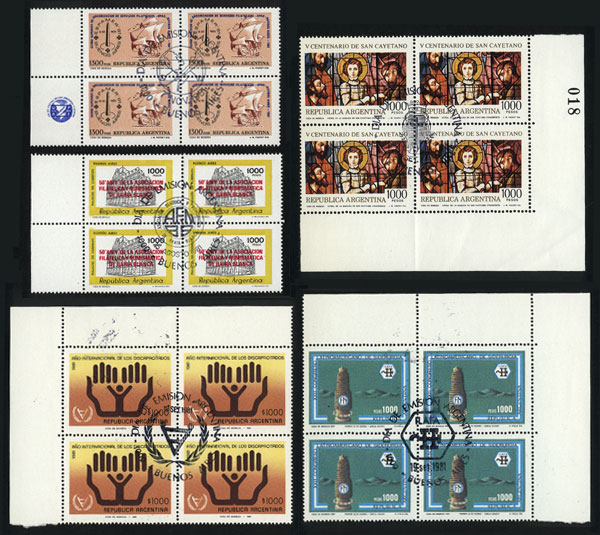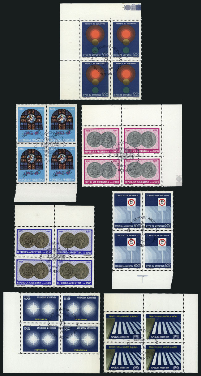 GJ.1990/1995 + 2000/2002 + 2007/2013, year 1981, in blocks of 4 with first day postmarks, including announcement leaflets, VF! (Image) (Image-02)