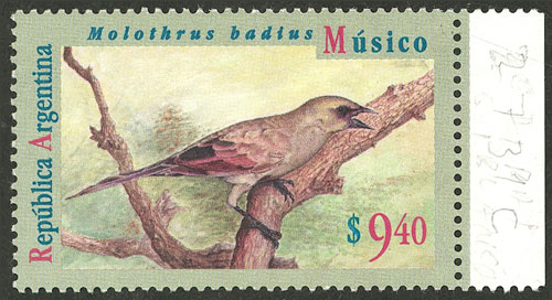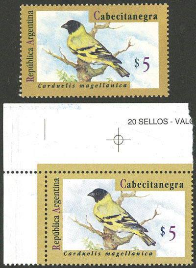 + 2730c, Bird (cabecita negra), examples of 1st and 5th printing (the latter with sheet corner), both of excellent quality (Image)
