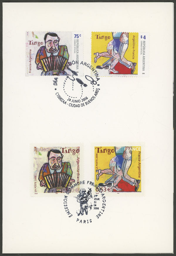 GJ.3542/43, Tango, joint issue Argentina-France, both sets on card with first day postmark (Image)