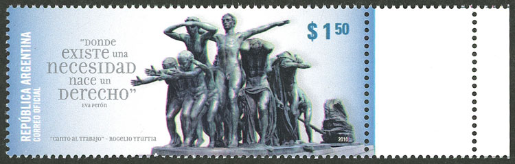 GJ.3853, $1.50 Working people, with small RIGHT LABEL and sheet margin, rare and of excellent quality (Image)