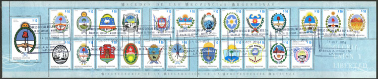 GJ.4129/4153, cmpl. set of 25 values with postmark of Mendoza 14/OC/2016 (Image)