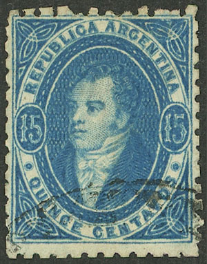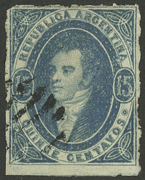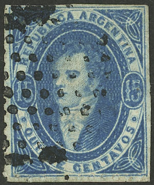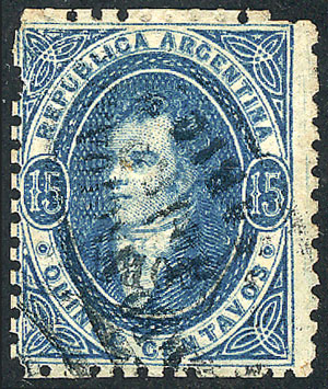 15c. semi-clear impression, used in Rosario, VF! (Image)