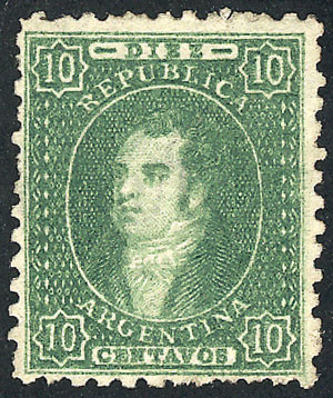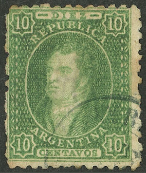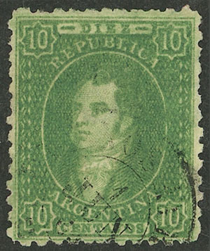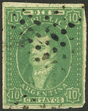 10c. dull impression, with semi-circle Córdoba cancel, very well perforated, scarce! (Image)