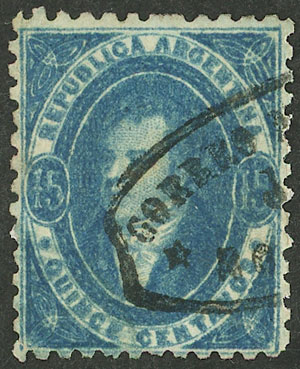 15c., bluish green, with 9-bar cancel of Corrientes, superb (Image)