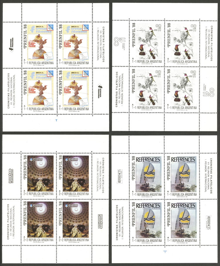 3rd River Plate Philatelic meetings, PROOFS printed on national unsurfaced paper, in 5 different color combinations, light stain spots. (Image)