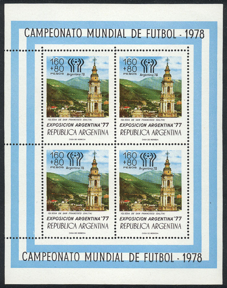 Argentina '78 Exposition, souvenir sheet with imperforate variety at right, VF! (Image)