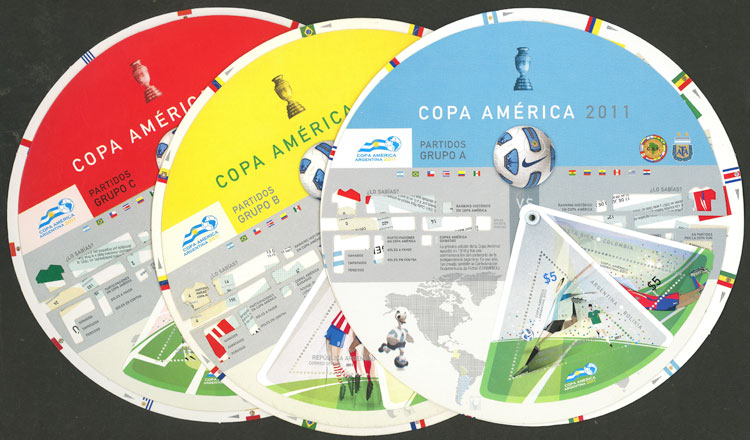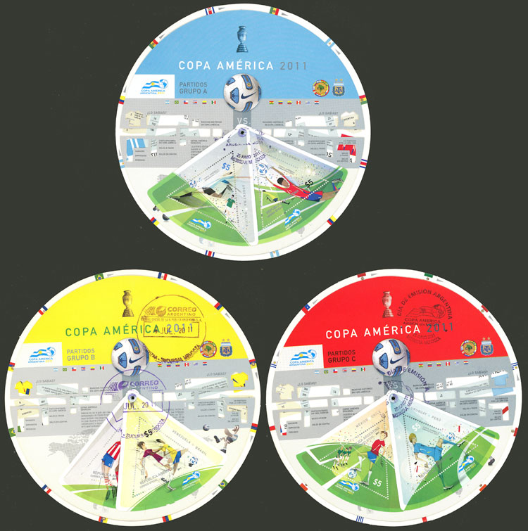 GJ.HB 225/230, Football / Copa América Argentina 2011, cmpl. set of 6 s.sheets, with first day postmarks, VF (Image) (Image-02)