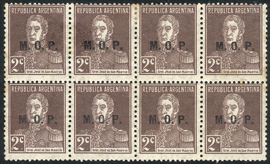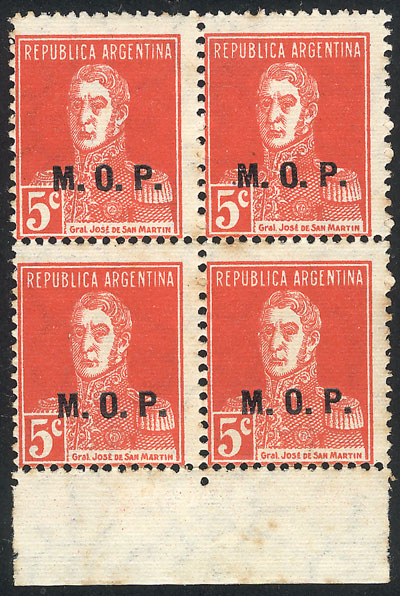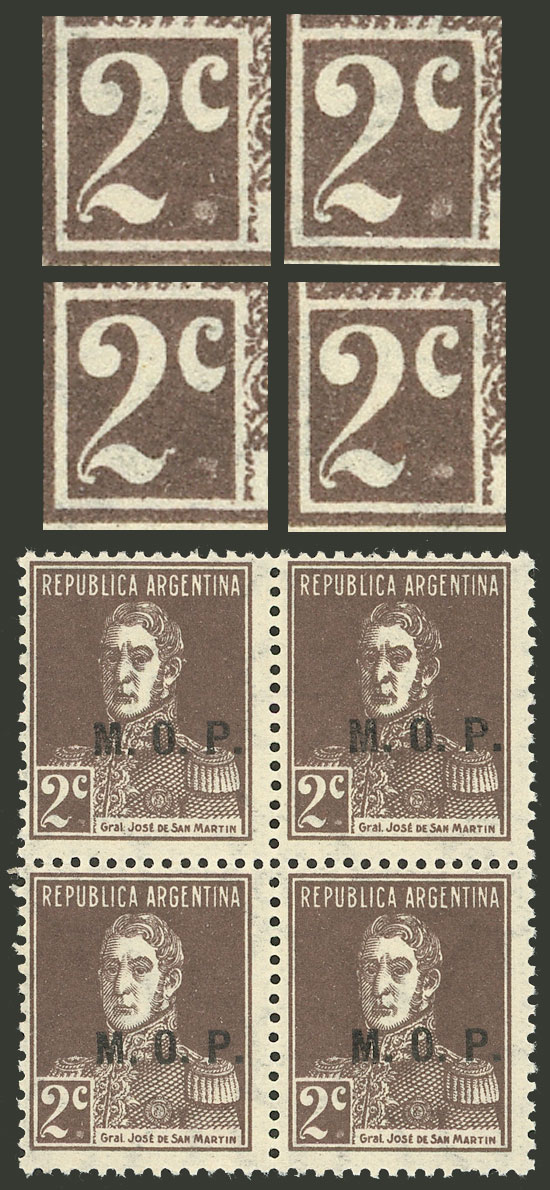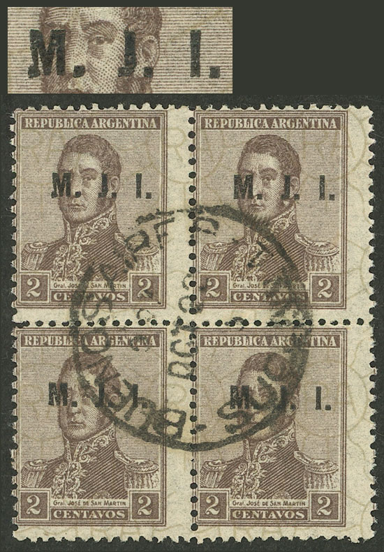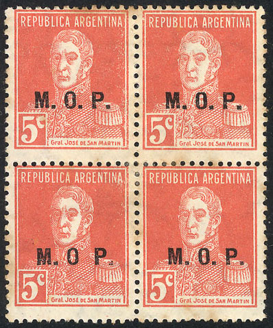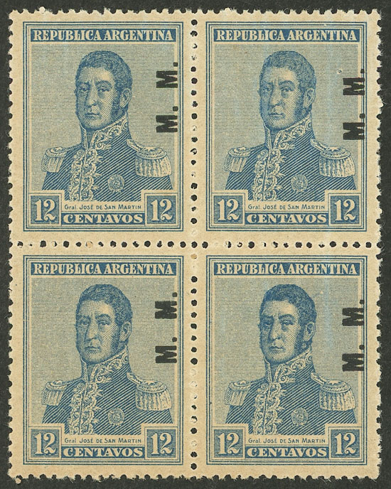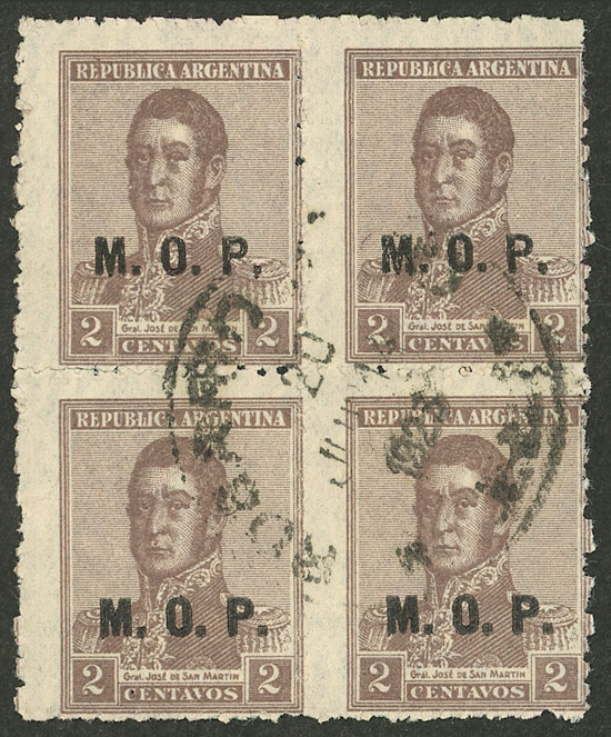block of 4, 2 with VARIETY: "M..M", and postmark of "EMPEDRADO" (Corrientes) (Image)