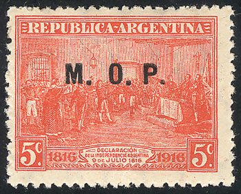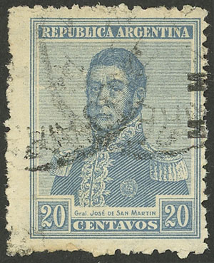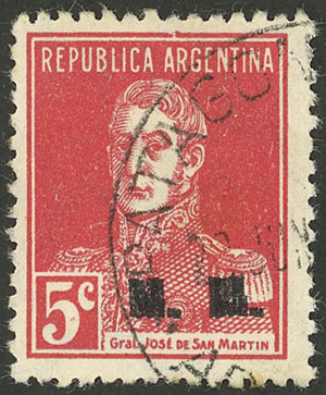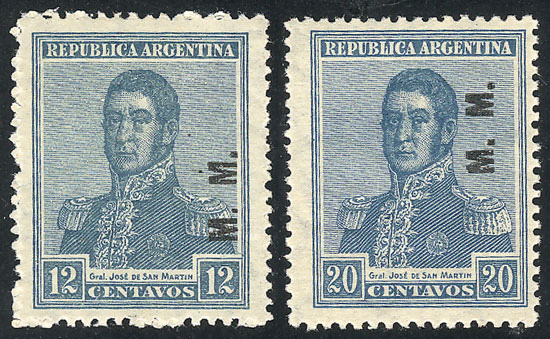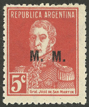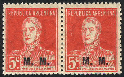 5c San Martín with period, perf 13¼ x 12½, M.M., the left stamp with "second M incomplete" variety, VF! (Image)