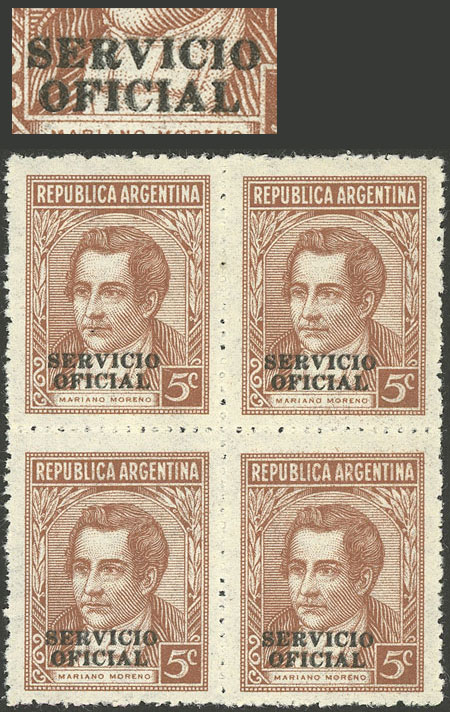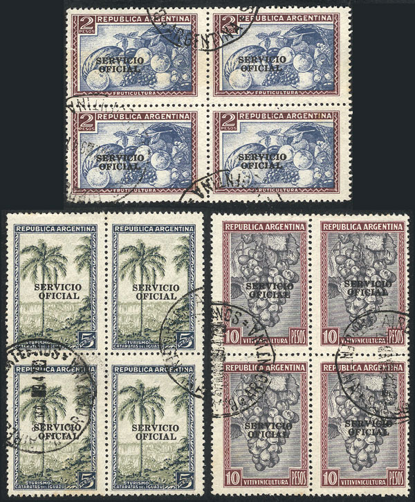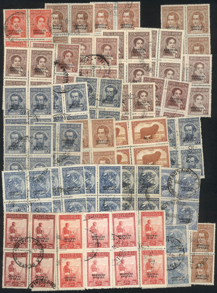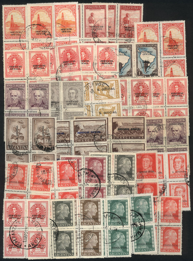 of more than 60 blocks of 4 (mostly used) of "SERVICIO OFICIAL" stamps, VF! (Image)
