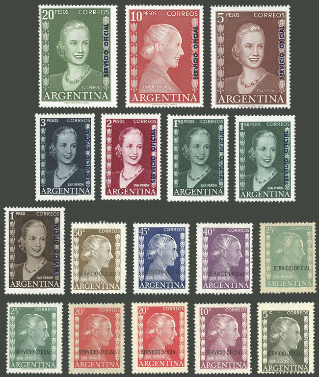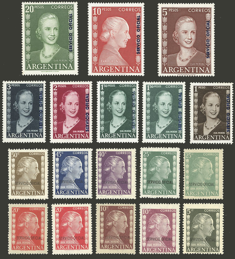 GJ.685/702, Eva Perón, cmpl. set of 18 values, fine to VF quality (Image)