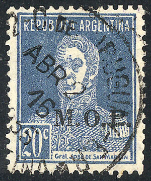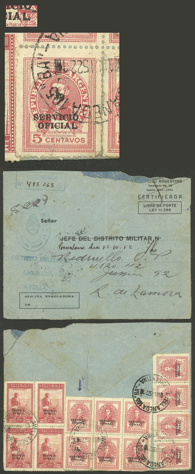 used in Avellaneda on 3/OC/1952, the postage includes a GJ.671 stamp with VARIETY: "L" of OFICIAL very different from the rest (Image)