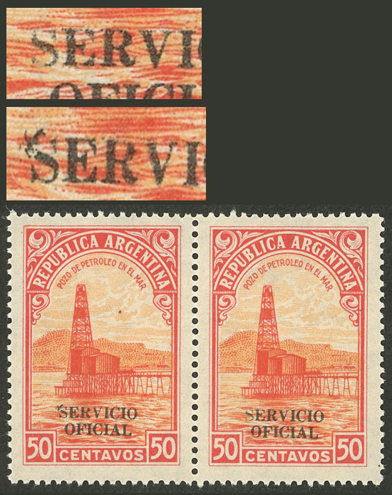 pair, both with VARIETY: "S" of SERVICIO with printing flaws (Image)