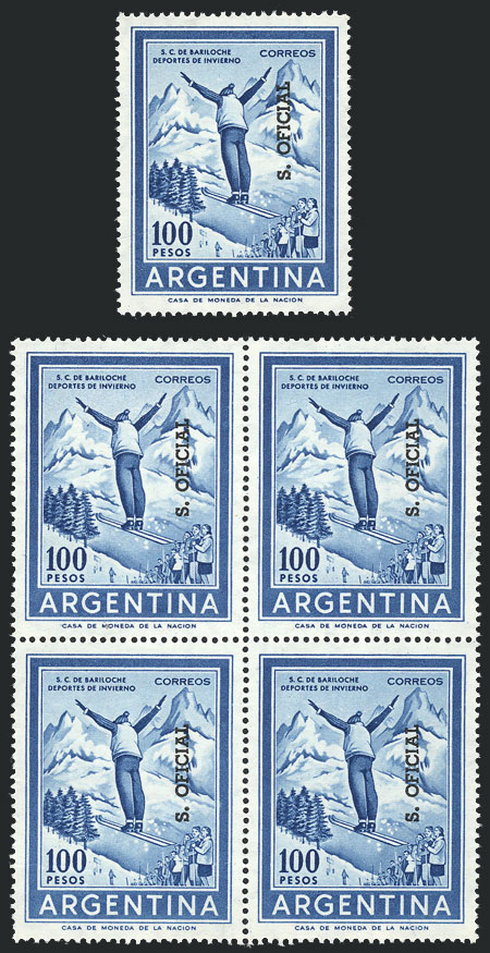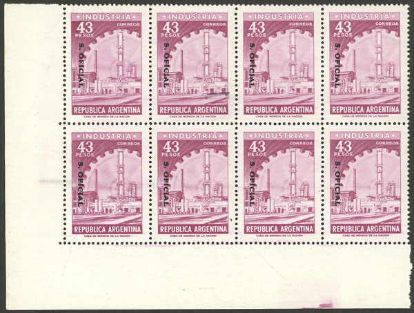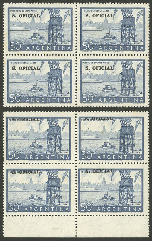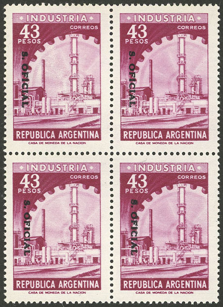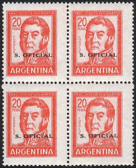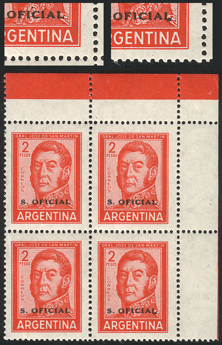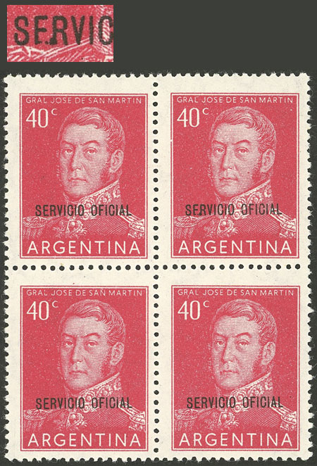 marginal block of 4, VARIEDTY: Shifted overprints, along a normal block, very nice (Image)