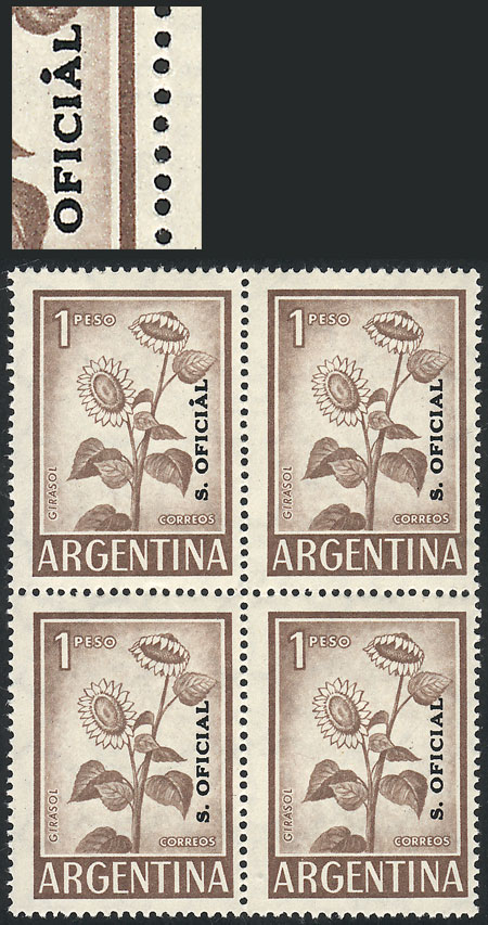 block of 4, one with VARIETY: Dot over the "A" of OFICIAL (Image)