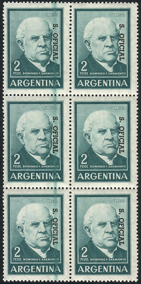 block of 6 with VARIETY: Color line along the left stamps (Image)
