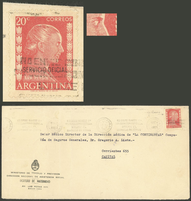 with VARIETY: white eye, franking a cover used in Buenos Aires in 1953, VF (Image)