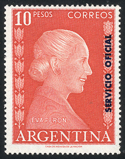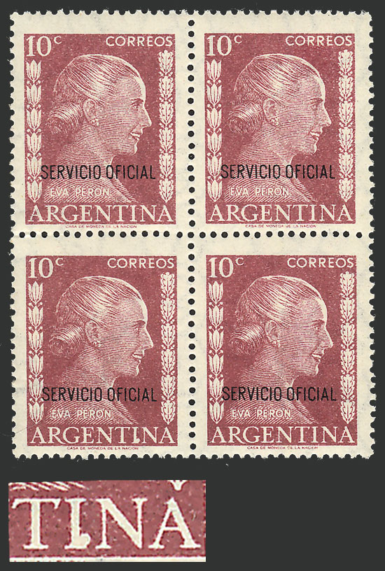 10c Eva Perón, block of 4, one with VARIETY: "I" of ARGENTINA with period, VF! (Image)
