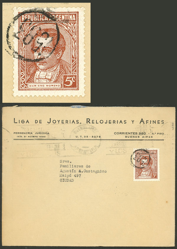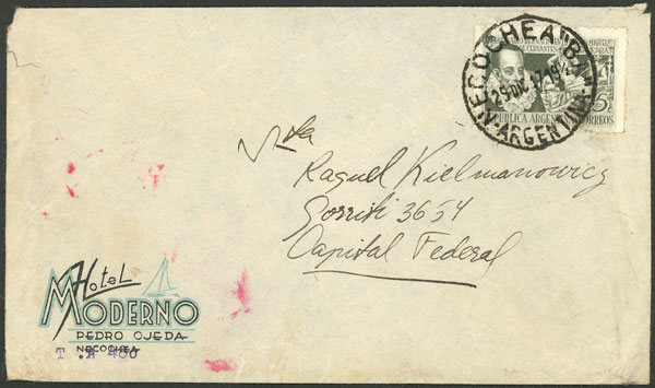 with cachet of "HOTEL MODERNO", franked with 5c., sent from Necochea to Buenos Aires on 29/DE/1947, small stains (Image)