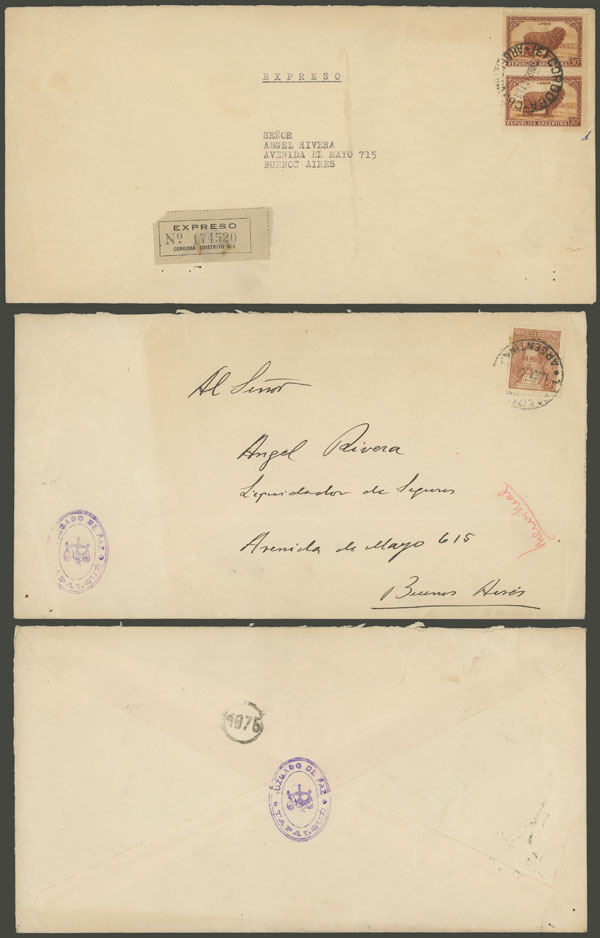 Registered cover with cancel of "PICADA SAN JAVIER" (Misiones), sent to B.Aires on 19/AP/1945 (Image) (Image-02)