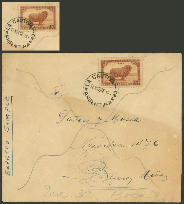Express cover with postmark of "LA CAUTIVA" (Córdoba), sent to B.Aires on 12/NO/1946 (Image) (Image-02)