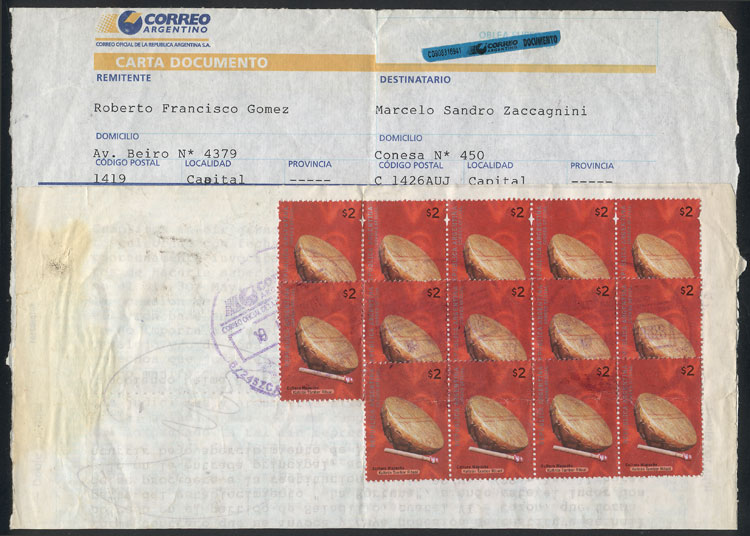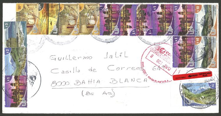 sent from Rosario to Bahia Blanca in OC/2012, with large multicolor franking of $37 (Image)