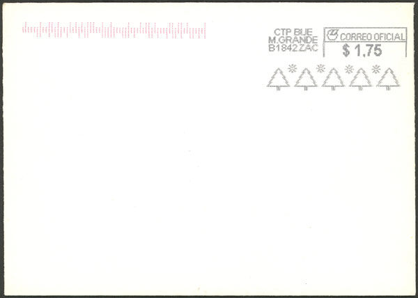 Envelope with PROOF of meter postage ($1.75) for Christmas of Monte Grande (B.Aires), very nice and scarce! (Image)