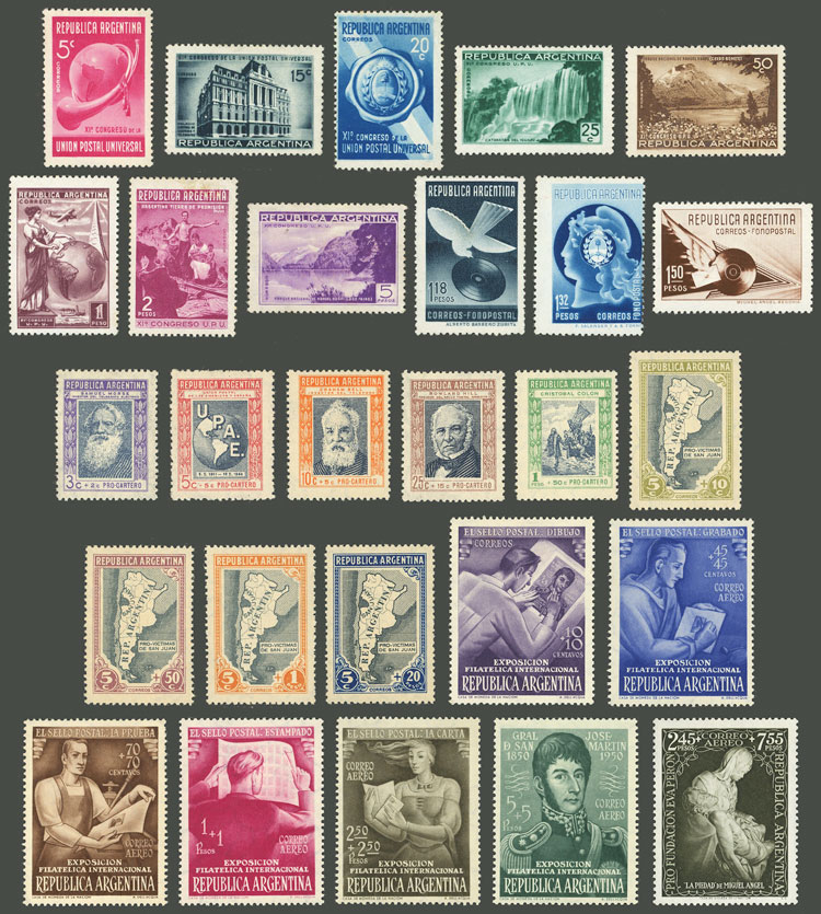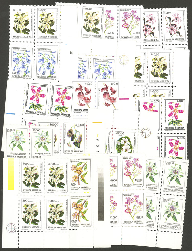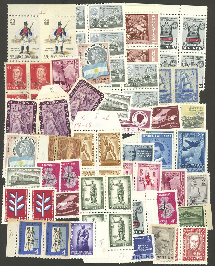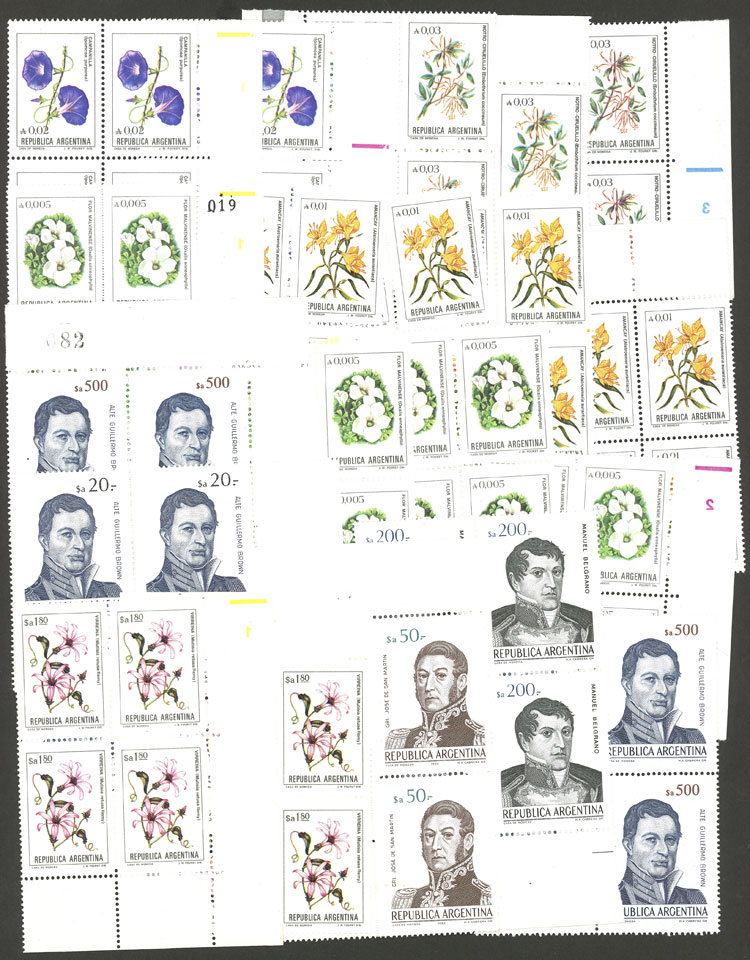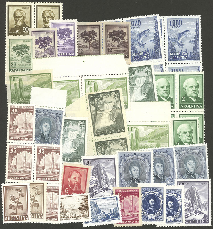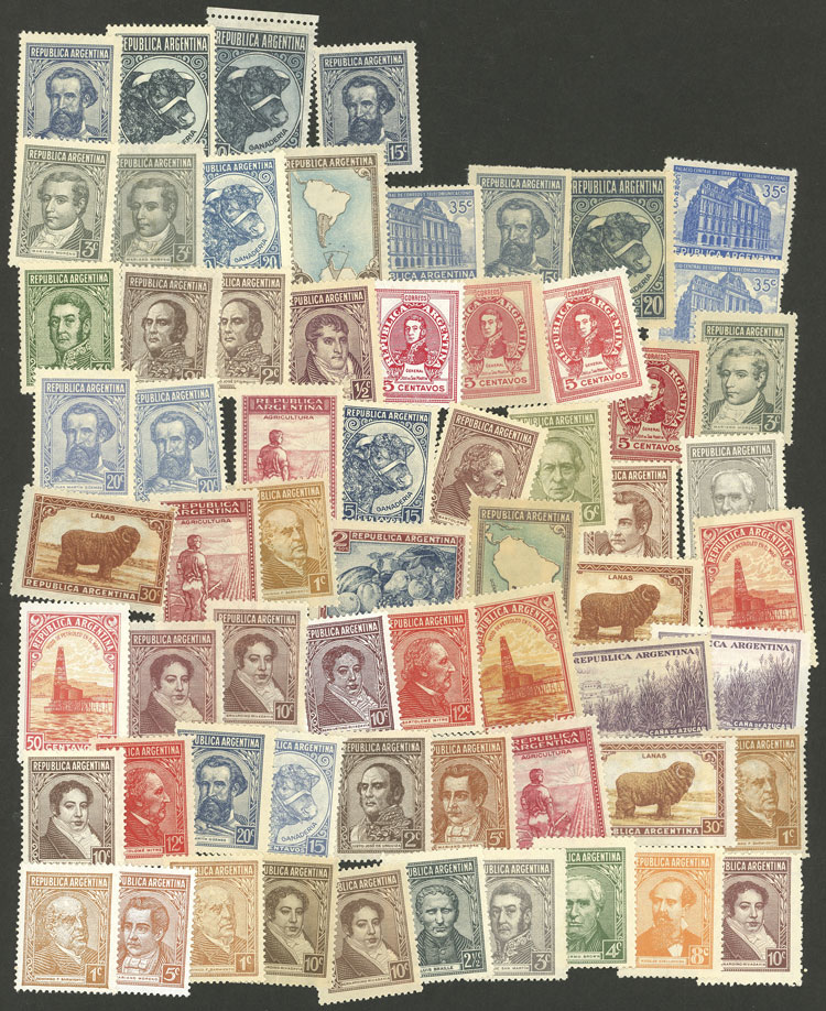 over 60 stamps of the issue Proceres & Riquezas I, all mint (most MNH), perfect lot to look for different papers and/or minor varieties (Image)