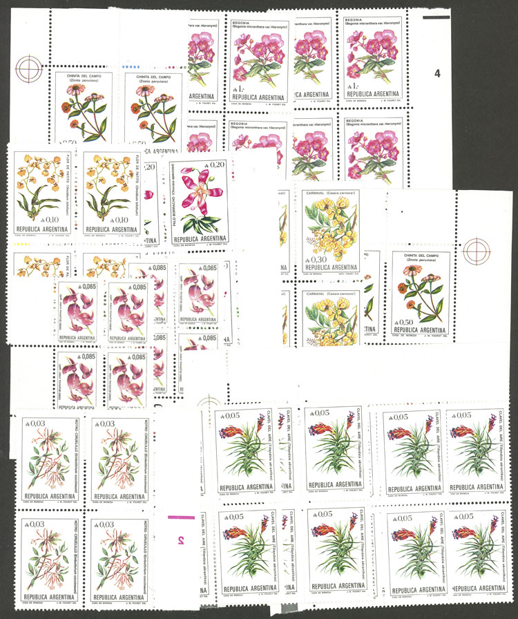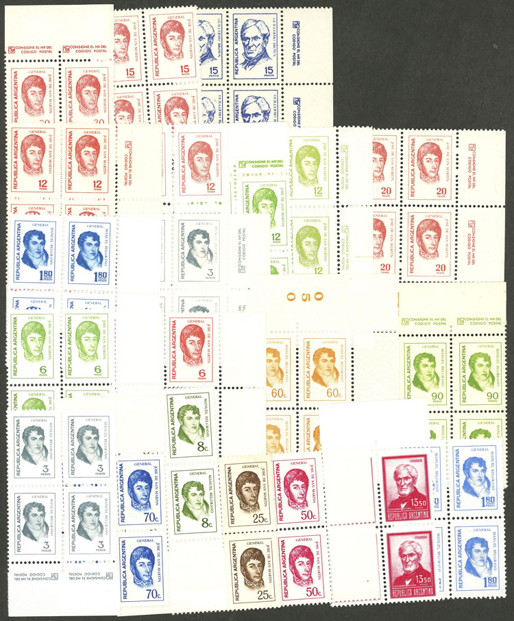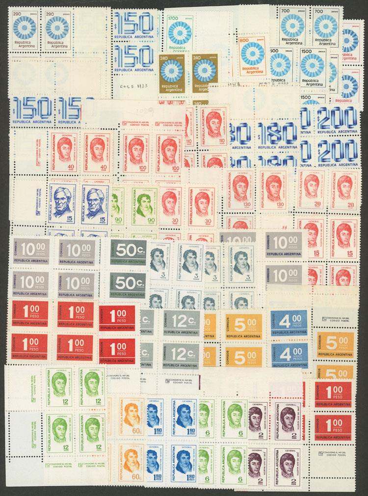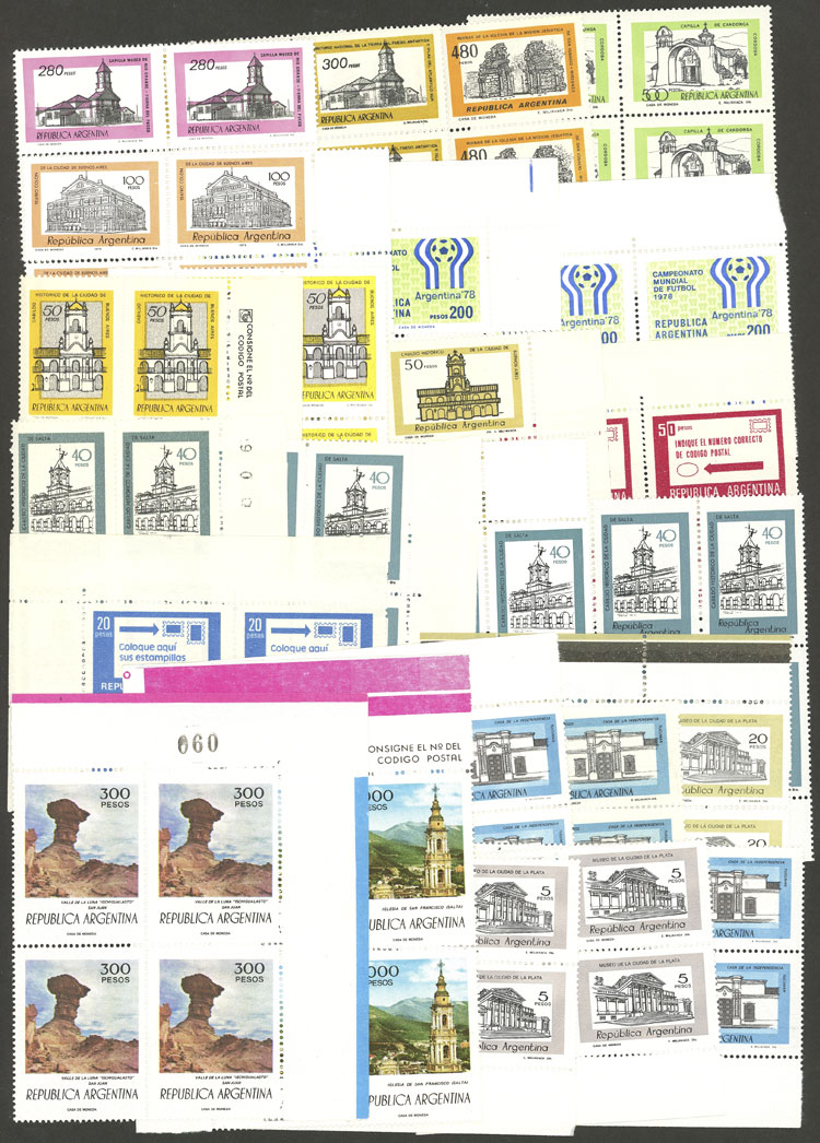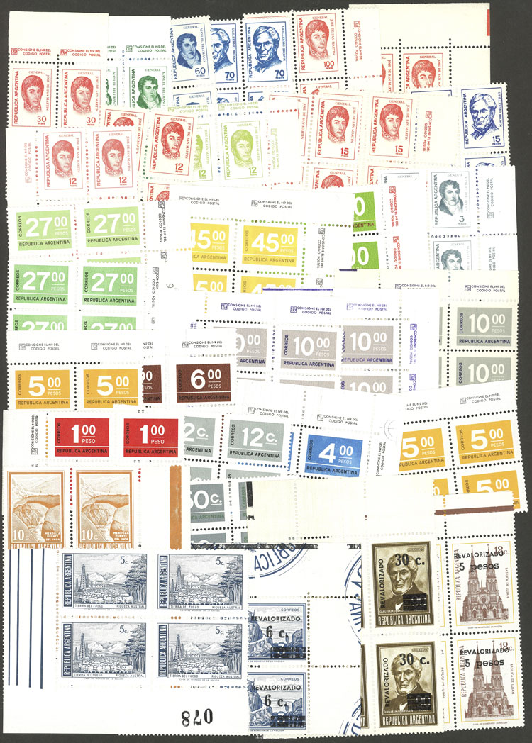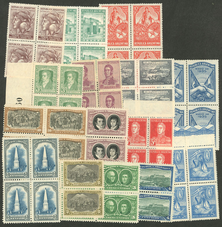 Lot of over 70 blocks of 4 of different basic sets, little duplication, all mint and of VF quality, good lot to look for papers, for retail resale or to use as space fillers, catalog value US$248, low start! (Image) (Image-02)
