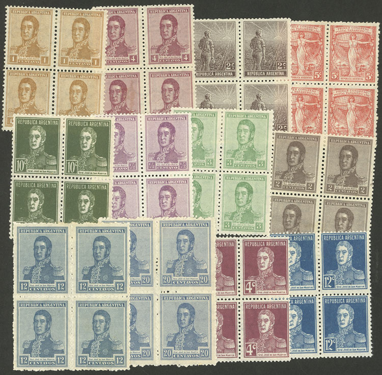 blocks of 4 of the Plowman issue, all of VF quality (Image)