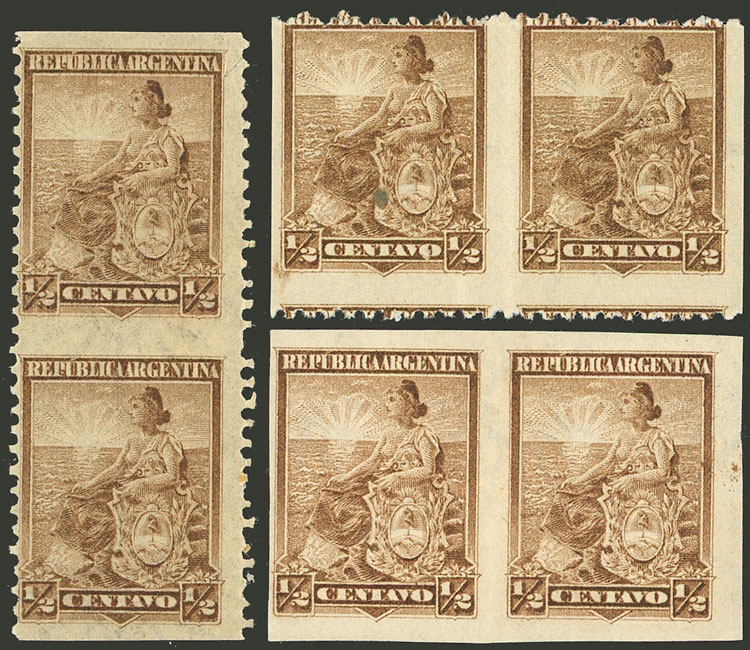 1902 Port of Rosario, IMPERFORATE corner block of 6, largest known multiple of this variety, excellent quality! (Image)