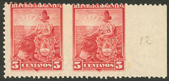 1910 12c. Congress, IMPERFORATE PAIR of VF quality, rare (Image)