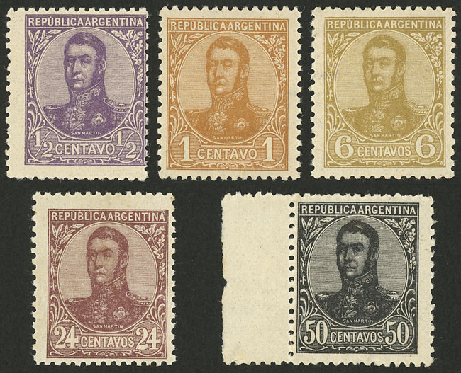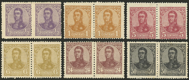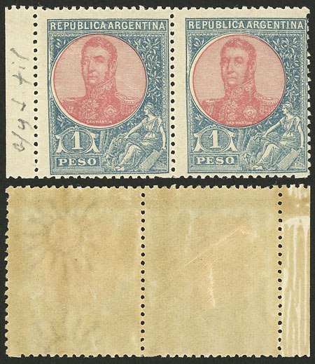1908 1P. San Martín in oval, pair WITH AND WITHOUT WATERMARK, excellent quality! (Image)
