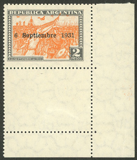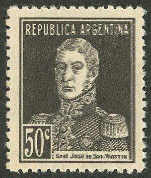 1924 50c. San Martín DOUBLE IMPRESSION variety, MNH (+50%), excellent! (Image)