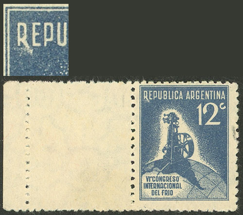 GJ.725CZ, 1932 12c. Congress of Cold Techniques, WITH LEFT LABEL and also variety: "R of REPUBLICA defective", excellent quality, rare! (Image)