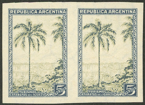 GJ.763AP, 5P. Iguazú falls (palm trees), beautiful IMPERFORATE PAIR, MNH (+30%), superb! (Image)