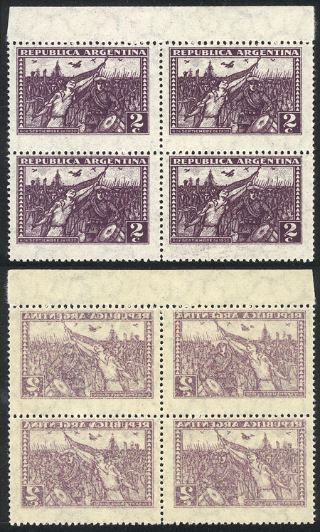 2c. Revolution of 6 September 1930, marginal block of 4, with offset impression on back, VF quality (Image)