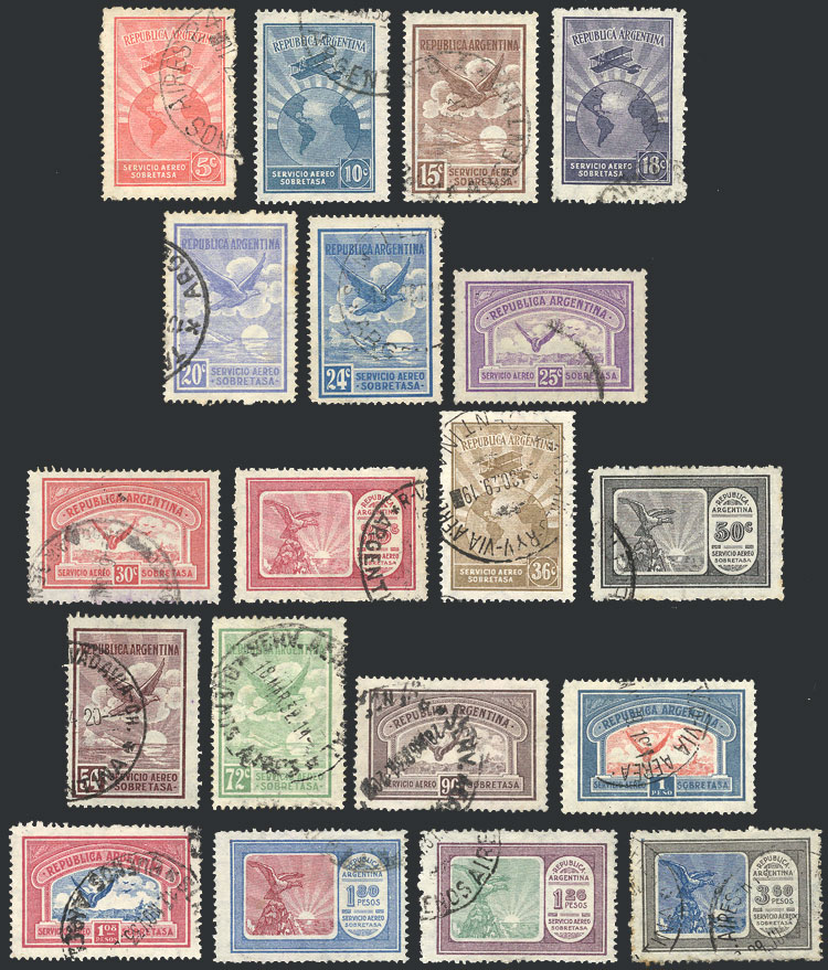 GJ.636/54, airmail, cmpl. set of 19 values, used, VF quality (Image)