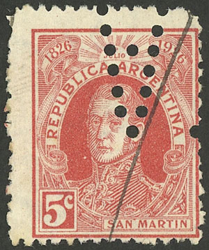 5c. Centenary of Correo Argentino, perforated "INUTILIZADO" (Image)