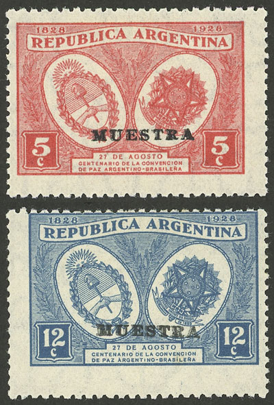 GJ.655/6, Argentina-Brazil Peace, cmpl. set of 2 values with "MUESTRA" ovpt., VF (Image)