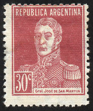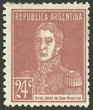 24c. San Martín w/o period, printed on ribbed paper, VF (Image)