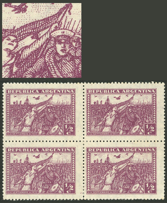 ½c. Revolution of 6 September 1930, block of 4, one with variety: Flag with sun, VF (Image)