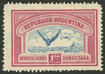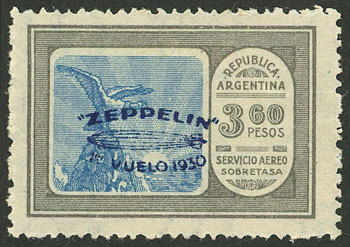 airmail, 3.60P. Zeppelin 1st flight, blue ovpt., signed by Benjamín Elkin, VF (Image)
