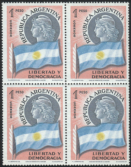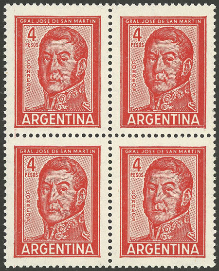 4P. San Martín, typographed, national unsurfaced paper, block of 4, VF quality (Image)