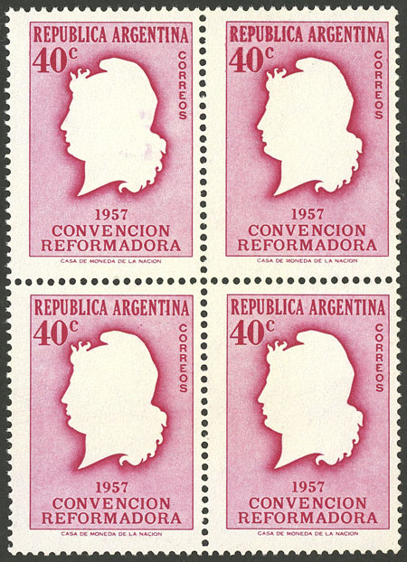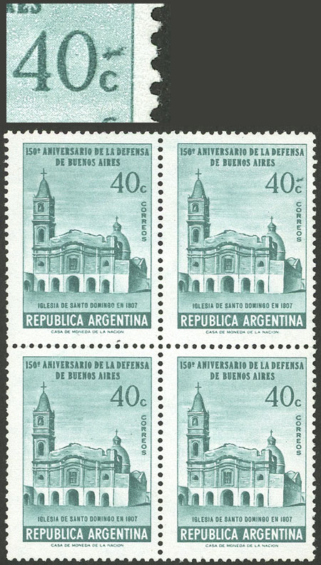 GJ.1082a, Defence of Buenos Aires 150 years, block of 4, one with variety: Airplane beside the "40", VF (Image)