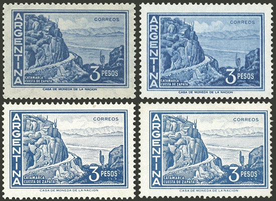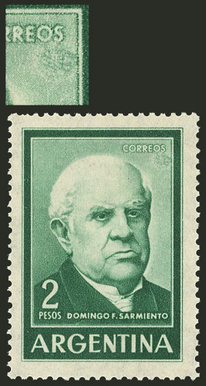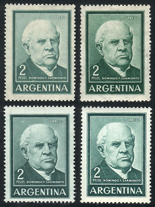 1135A + 1135B, 2P. Sarmiento, photogravure, on national unsurfaced paper (2 different printings), national glazed paepr and imported unsurfaced paper, VF quality